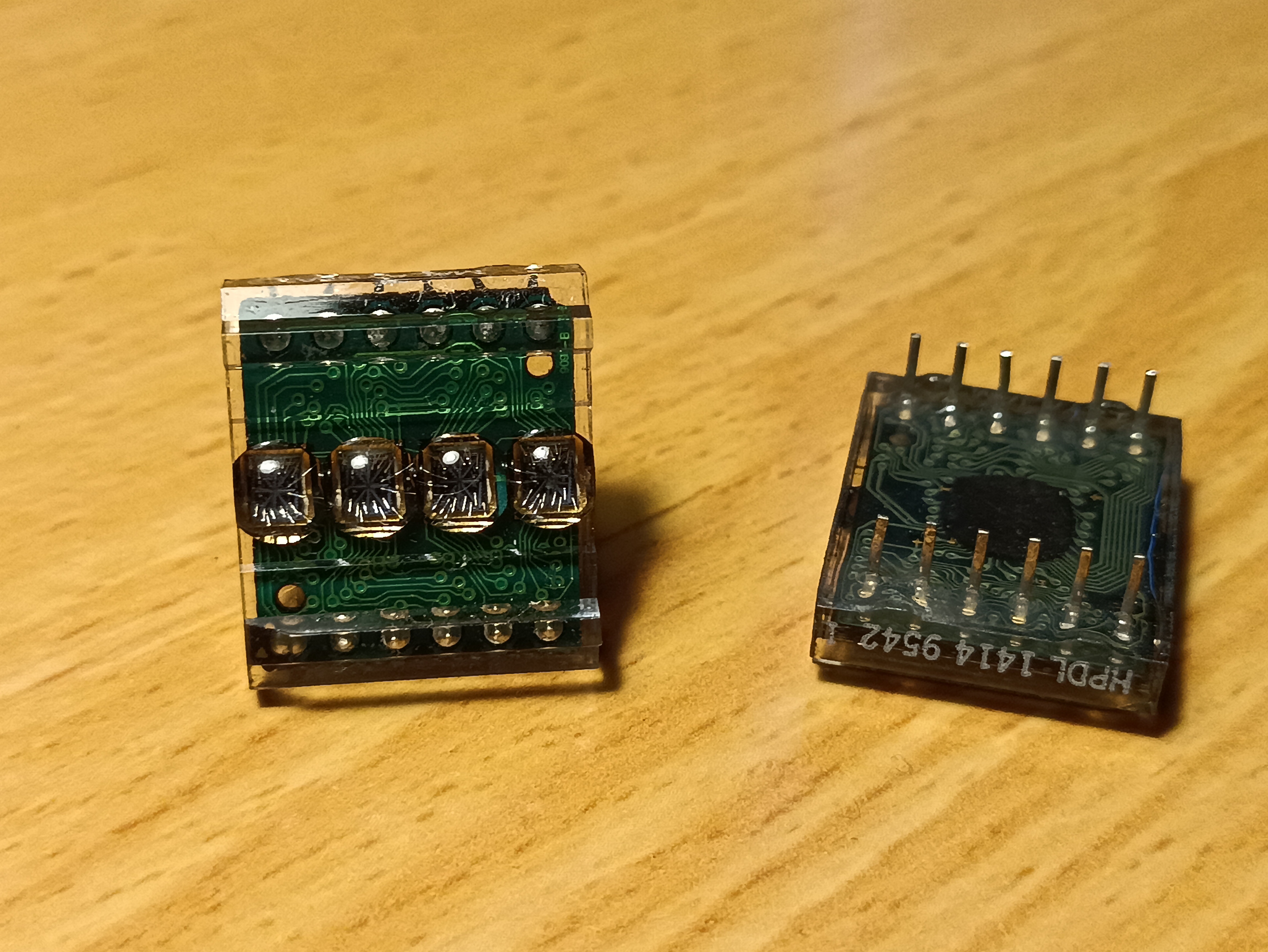 A functional equivalent to the TIL311. A hex display with 4-bit BCD data input, and can display hex digits 0 through F, representing the bit sequence at the input. These consume a constant