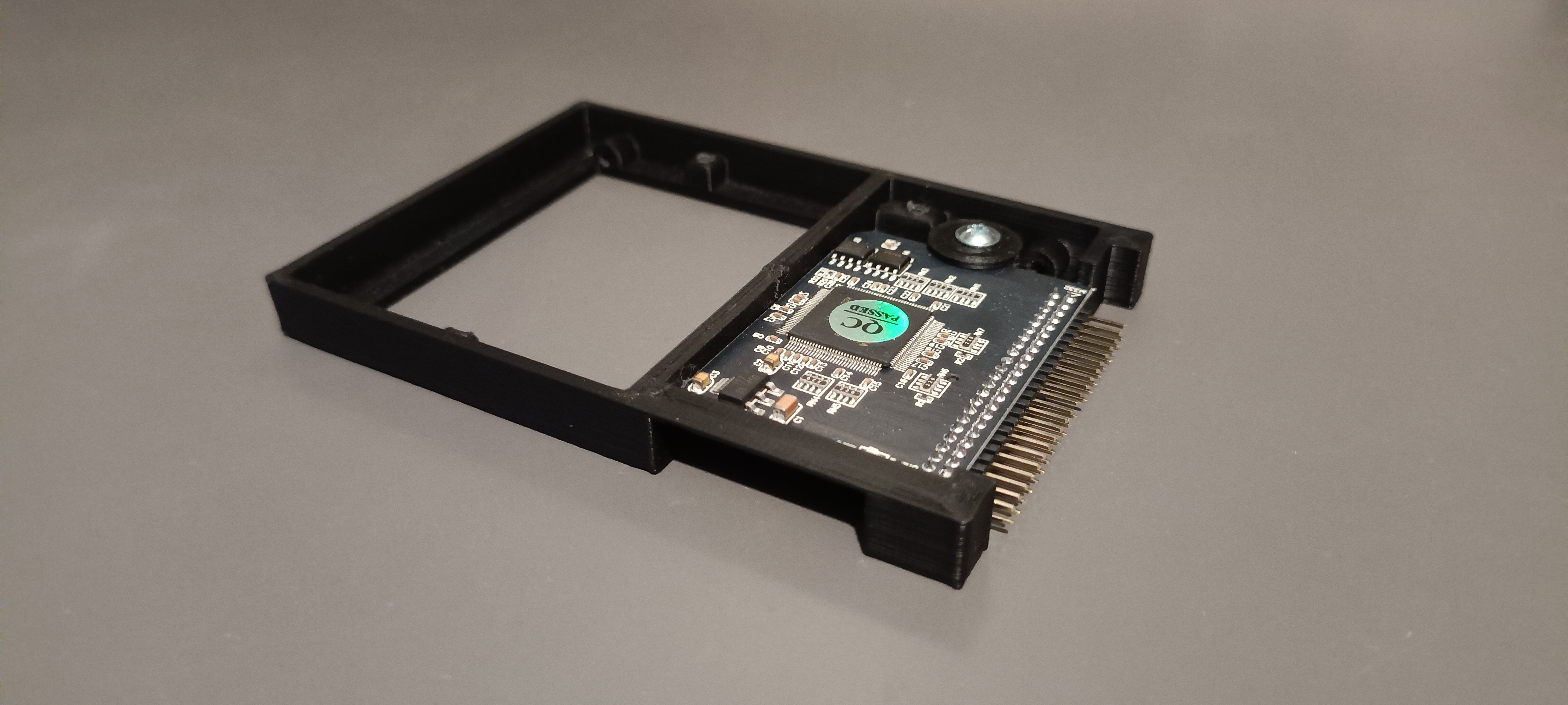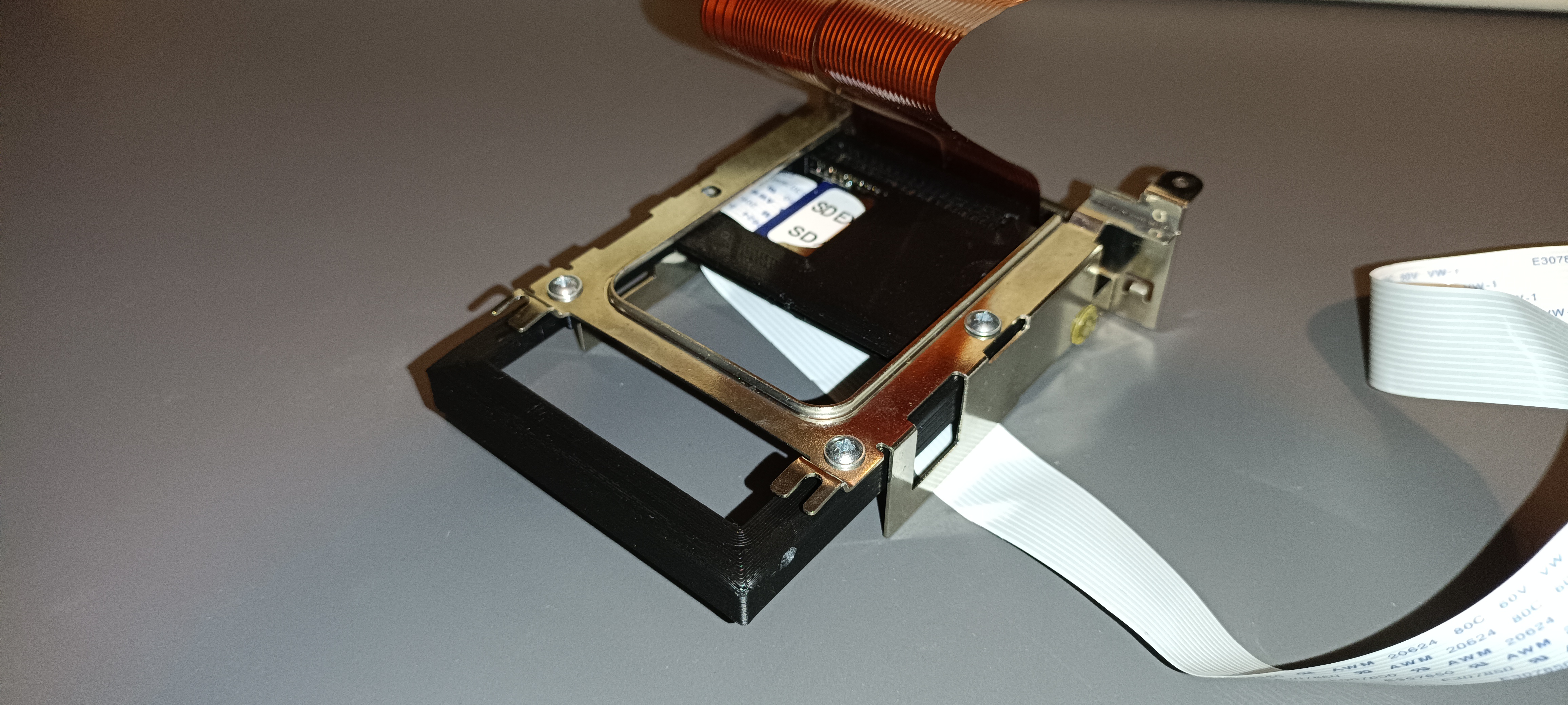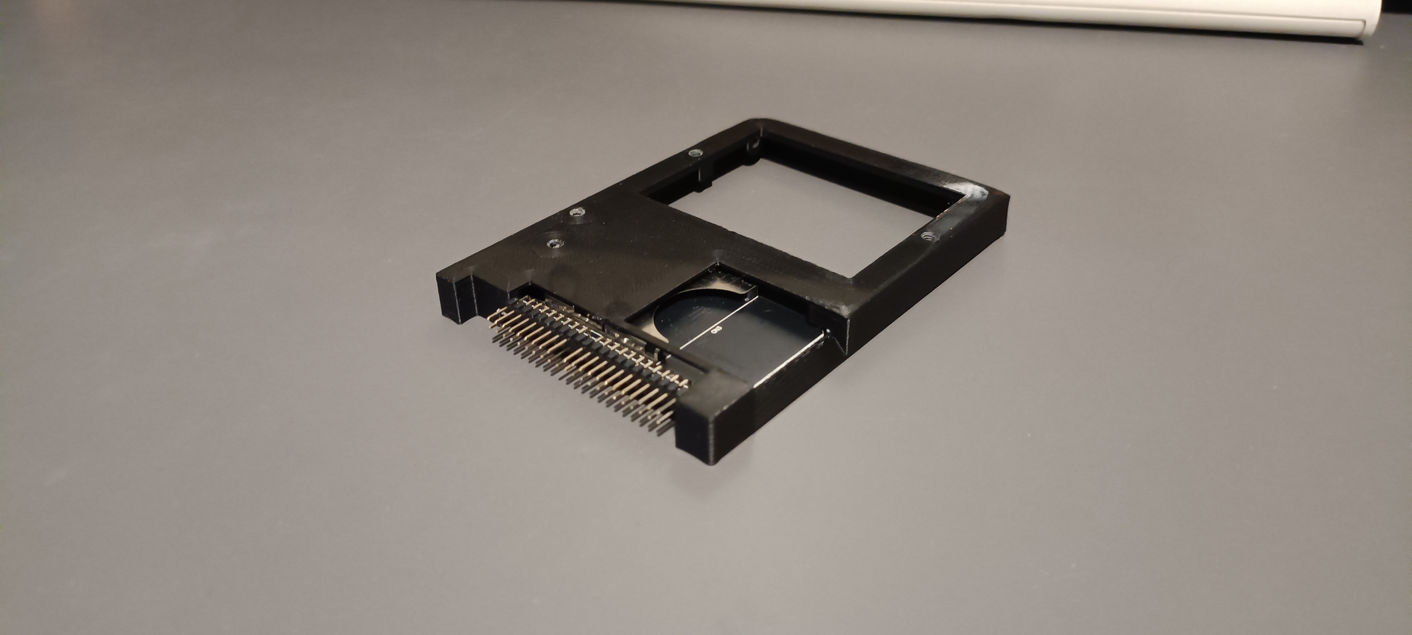is screwed at the bottom, so holes had to be introduced. A cutout was added to make the SD slot accessible and