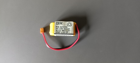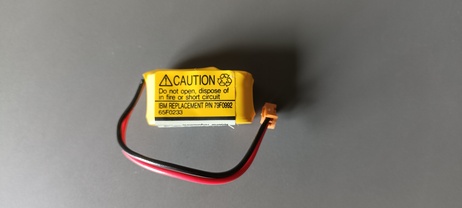 The original backup battery is a Panasonic BR-2/3A (nominally 3 volts, 1.2 Ah capacity), with its terminals