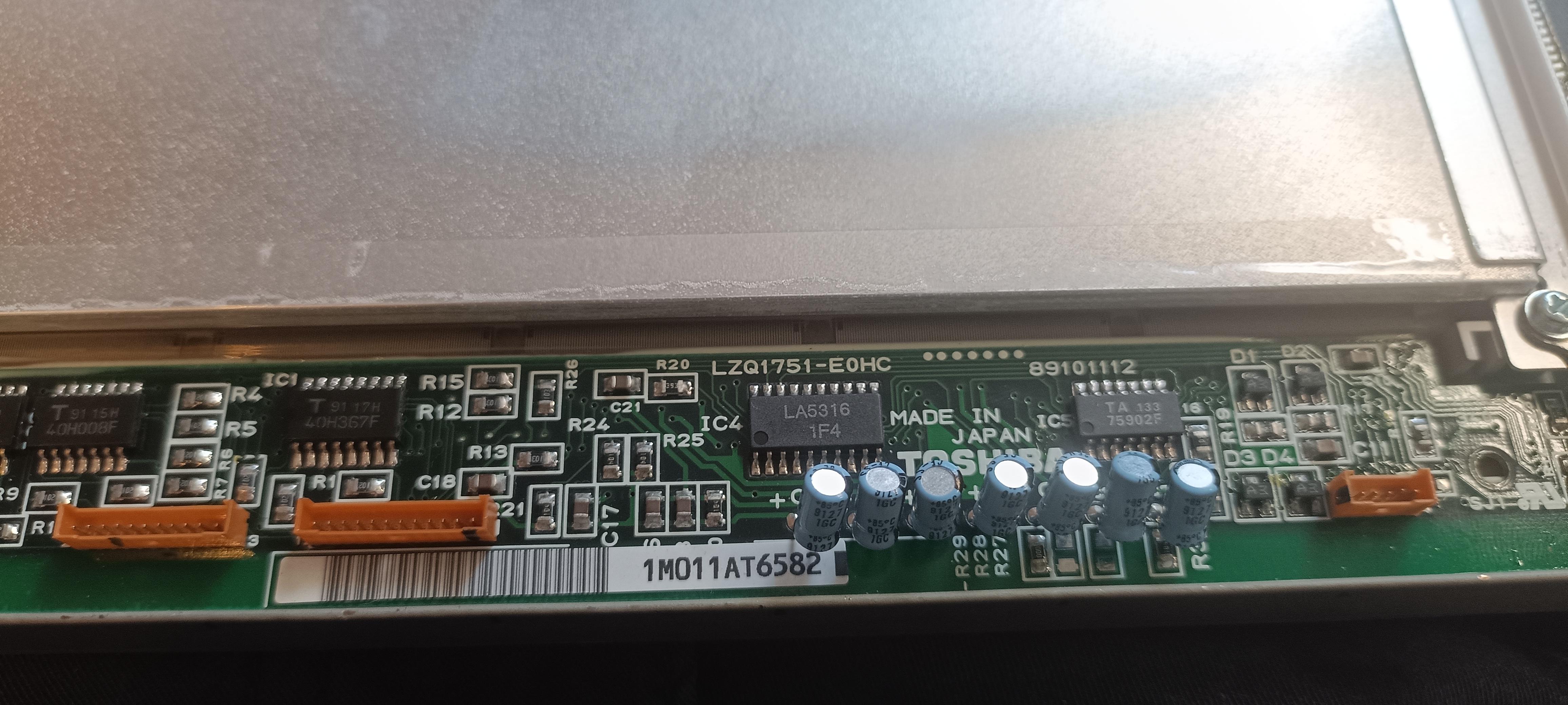 One board inside the display (Toshiba LZQ1751-E0HC) has a row of 7 identical capacitors, and this board is attached directly to the LCD matrix.
