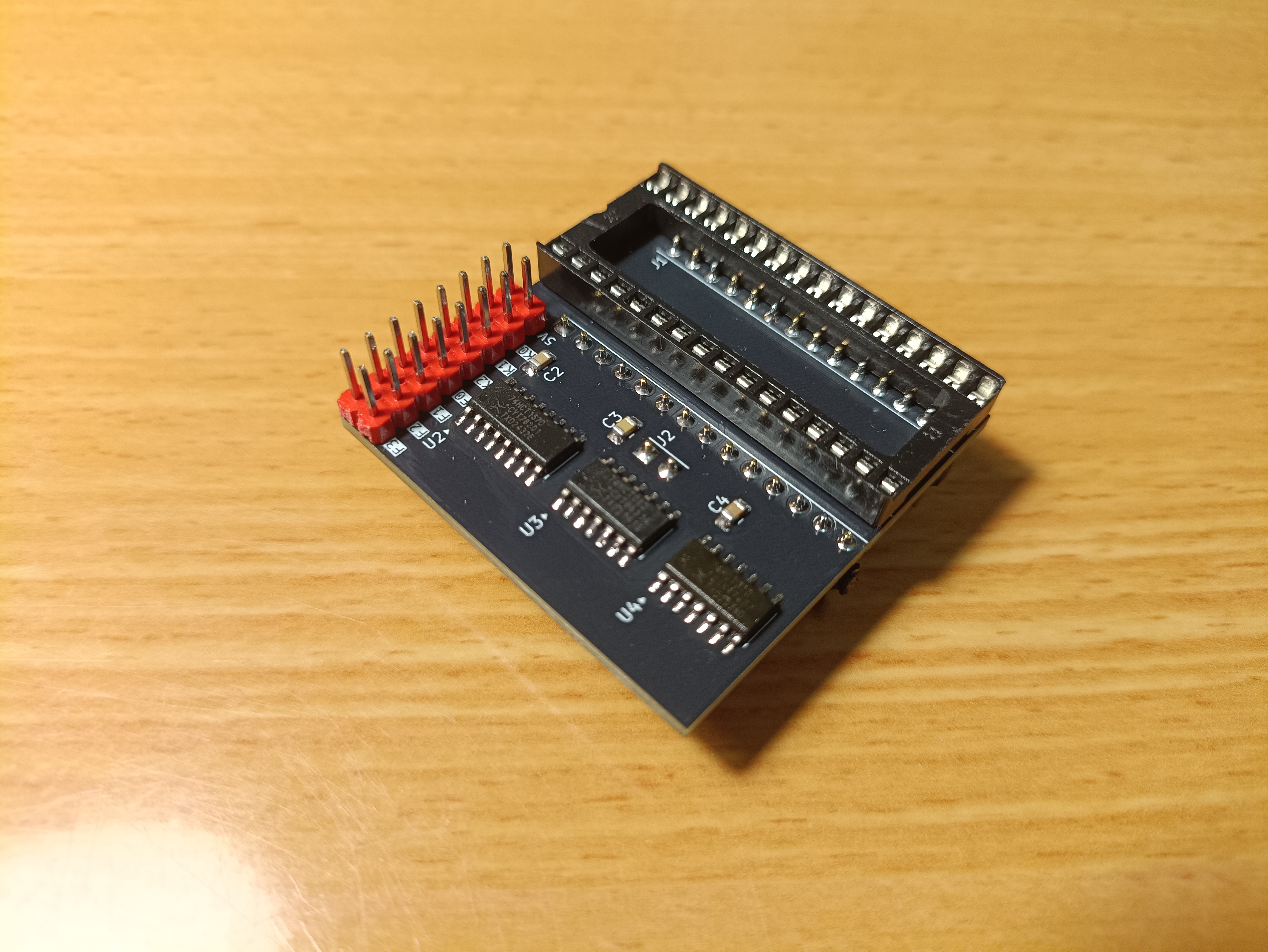 - Cut down the bottom right corner pin's solder joint, as it may collide with the DIP socket