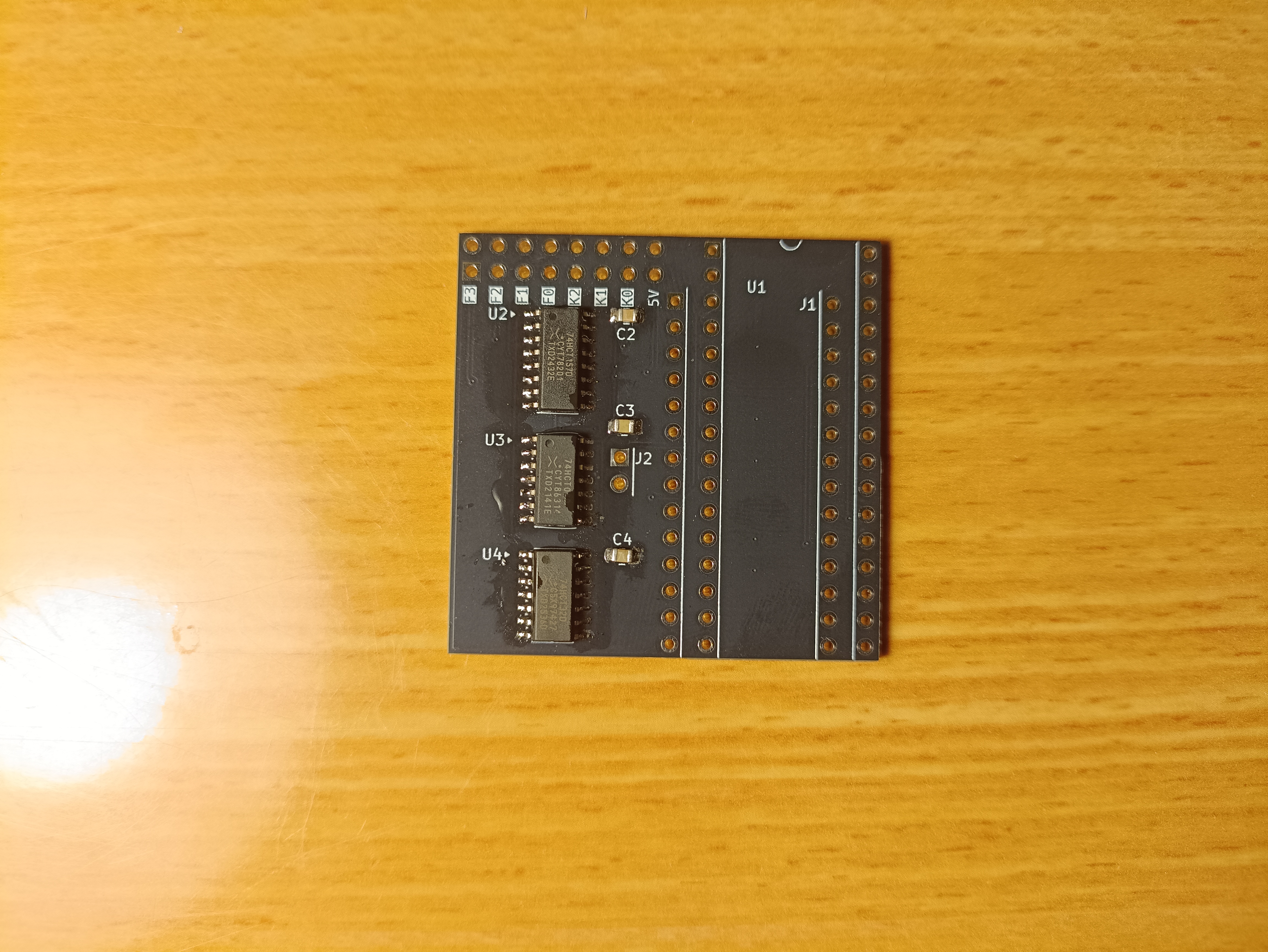 - Solder all top-side chips (U2, U3, U4) and capacitors (C2, C3, C4).
